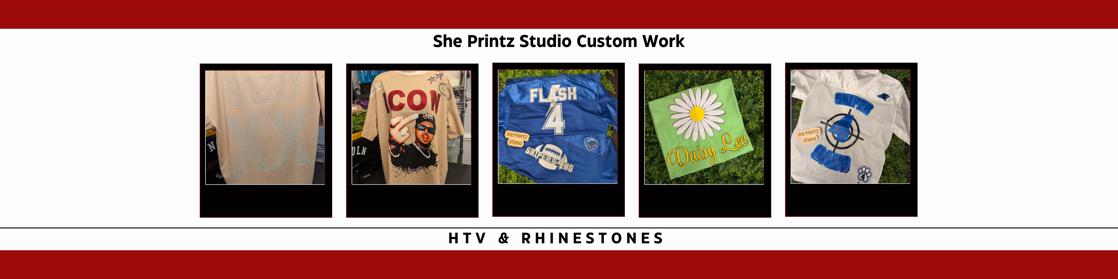 I was looking for a black owned print company that could customize several things for me for my kids football season. And I didn’t want to worry about seeing someone else wearing my design or have to worry about my design falling off my clothes or print job fading after washing. I seen this company advertised on IG and Facebook and took a chance my first order was a few shirts. And to this day them shirts still look like they did on day one. The fit and material of the shirts wasn’t the average oversize white T-shirt it fitted nice and it stretched. I’ve been back several times since then she even was able to customize my son duffel for football which is by far my favorite item and clothes for my dog 😍