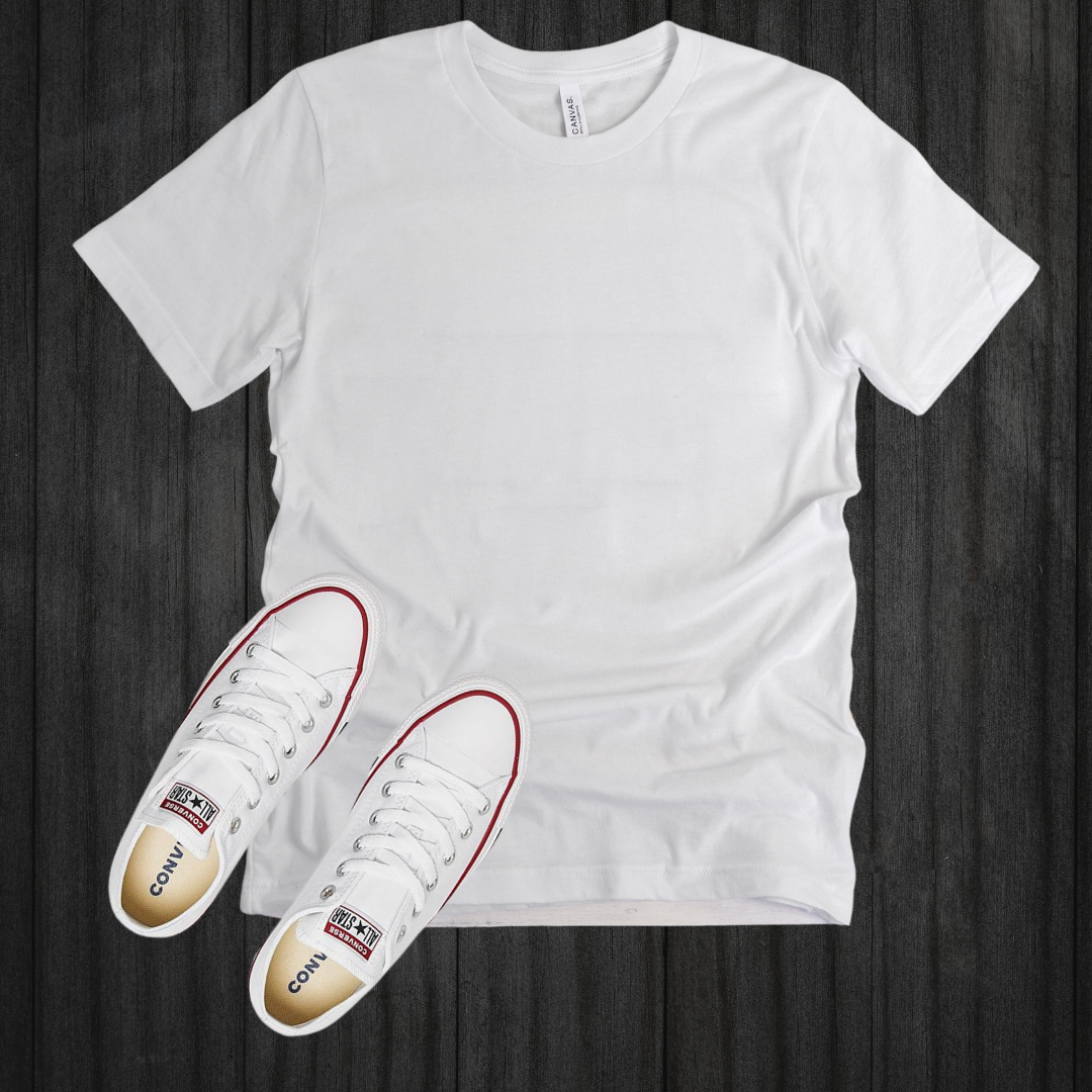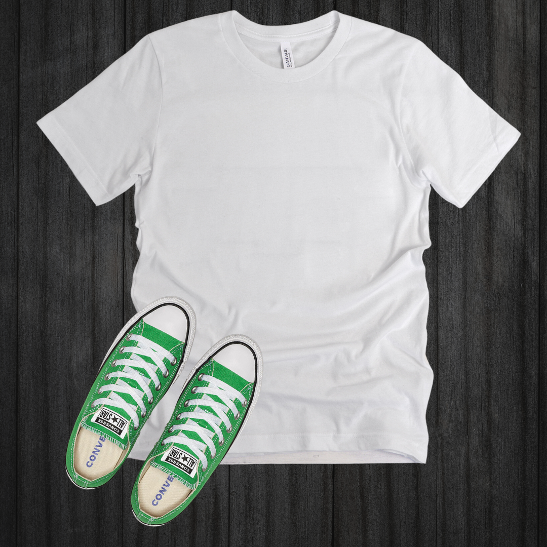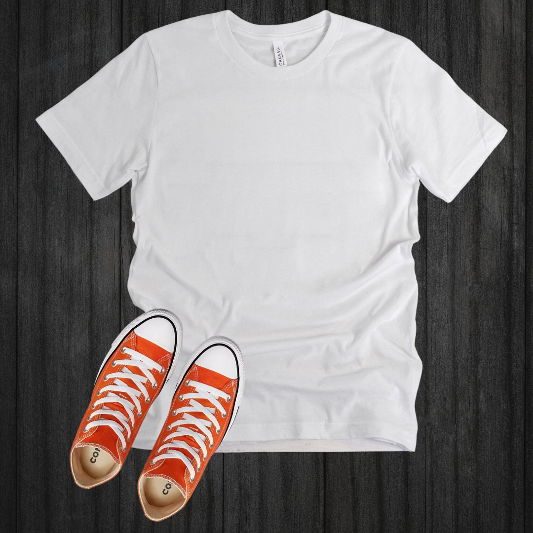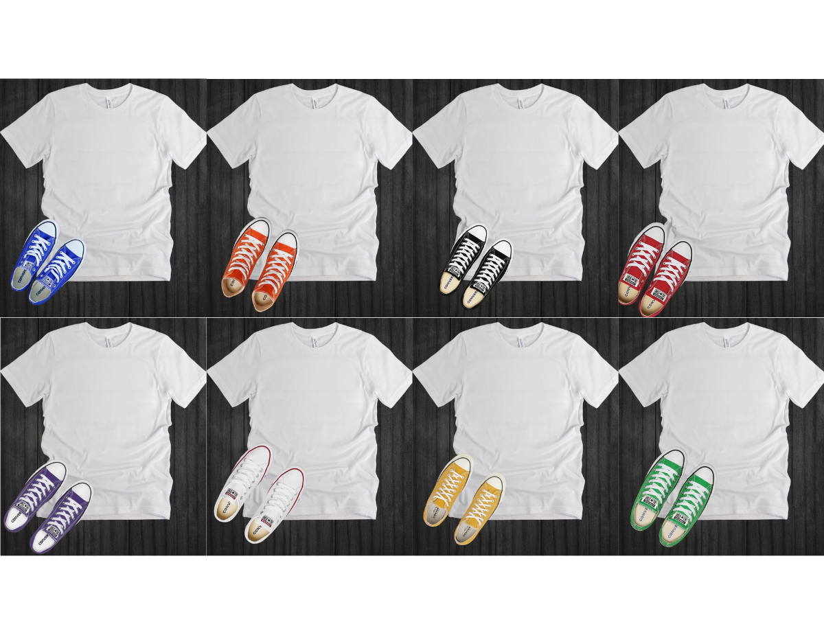 Elevate your brand with our White T-shirt & Converse Mock-up! Showcase your designs with ease and save on inventory costs. 8 high-quality mock-ups provide endless possibilities for your product images. Be bold and stand out with our stylish and practical solution.