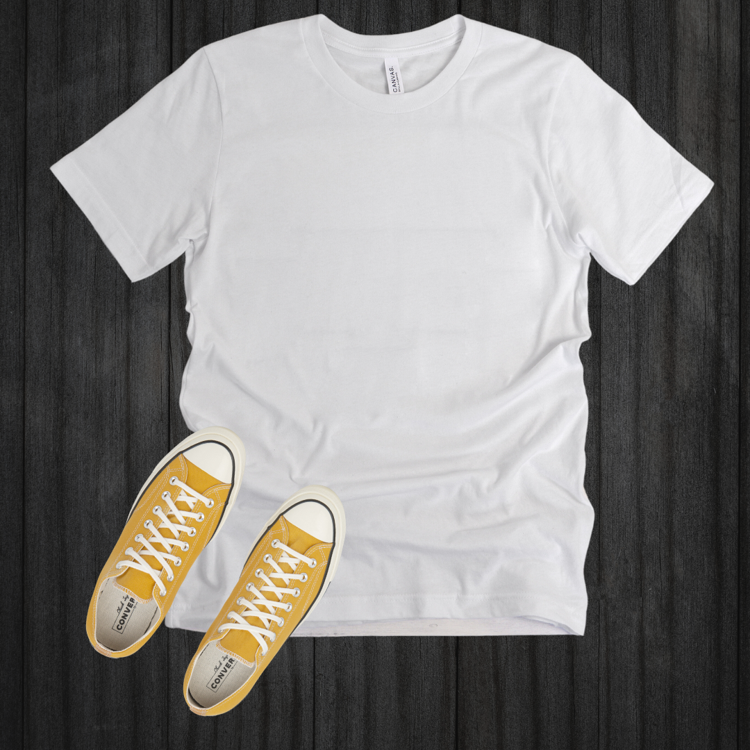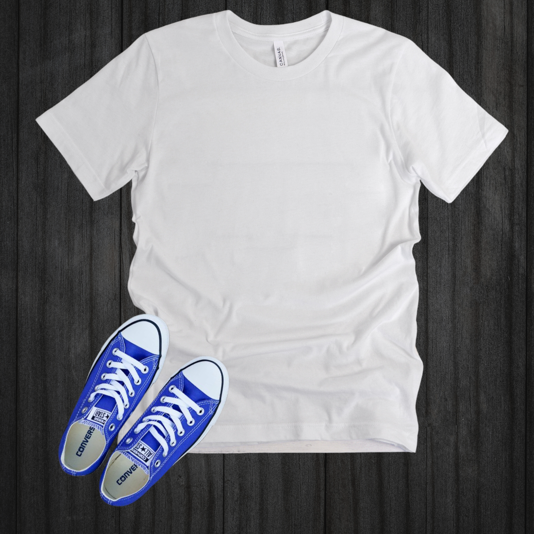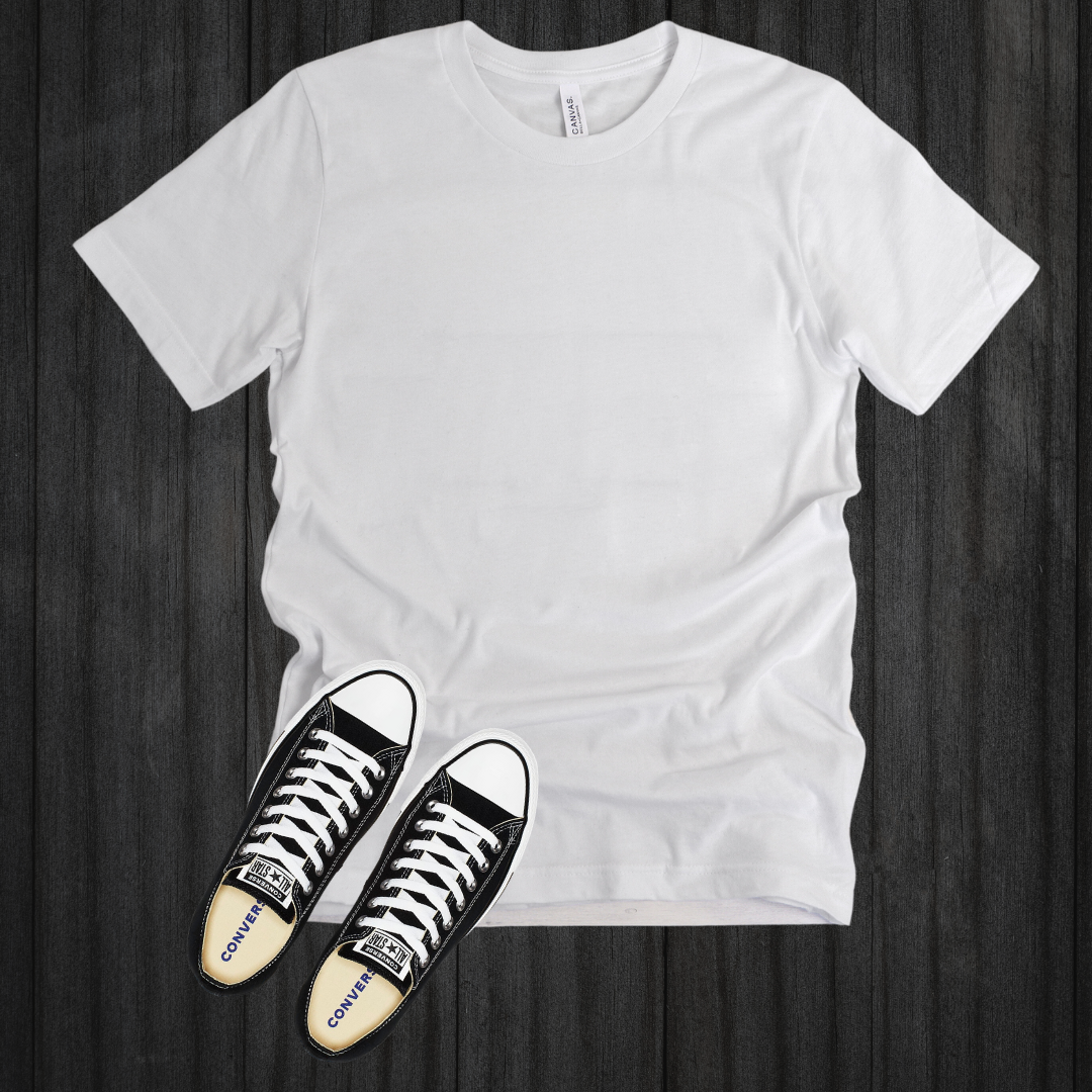 Elevate your brand with our White T-shirt & Converse Mock-up! Showcase your designs with ease and save on inventory costs. 8 high-quality mock-ups provide endless possibilities for your product images. Be bold and stand out with our stylish and practical solution.