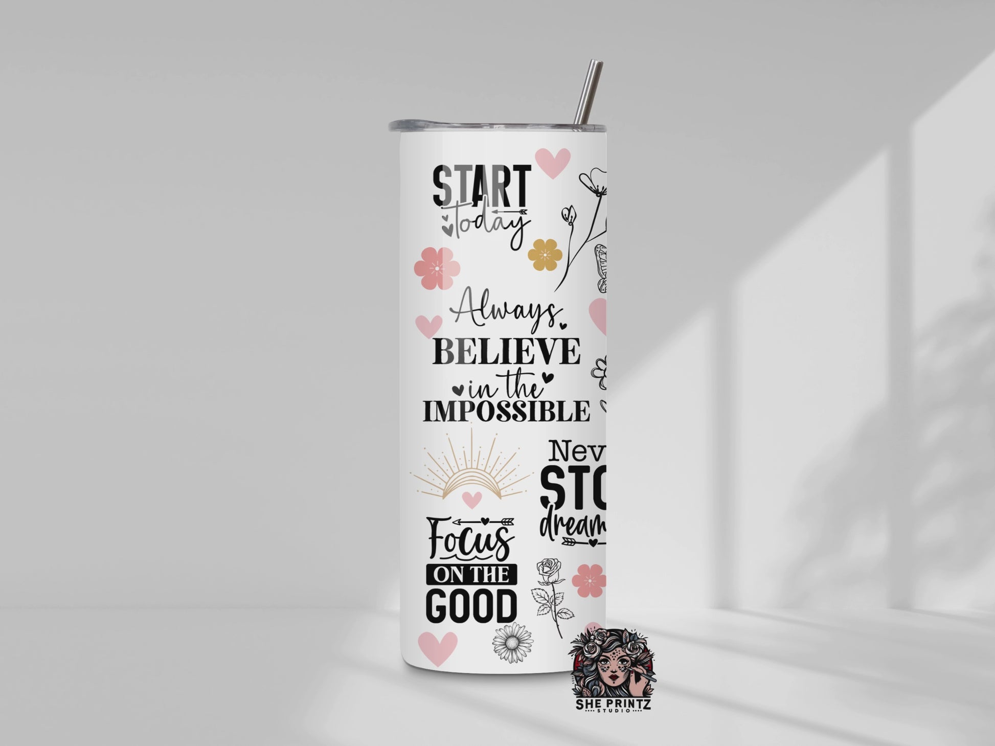 Elevate your mood with our Positive Affirmation Tumbler! Crafted from durable stainless steel, this 20oz tumbler keeps your drink hot or cold for hours. And with its inspiring positive vibes, it's the perfect daily reminder to stay positive and motivated! Get yours now and bring some positivity into your day!