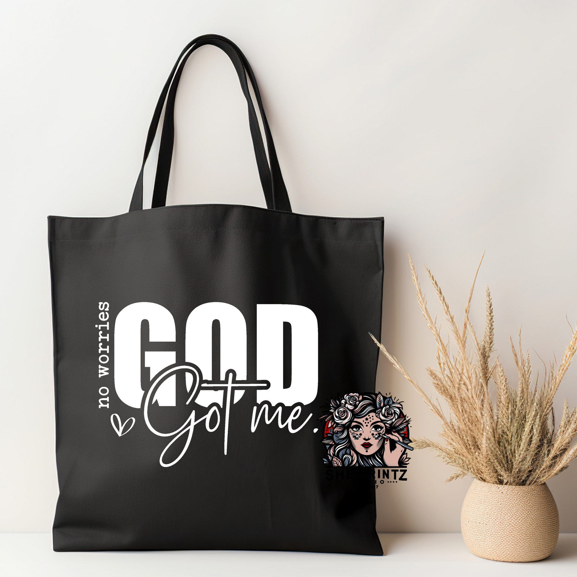 Stay worry-free with our "No Worries, God got me" tote bag! Designed to be the perfect companion for your busy lifestyle, this durable bag keeps all your personal belongings safe and organized while you're on the go. Let the inspiring message and practical features of this tote remind you that you're always taken care of.