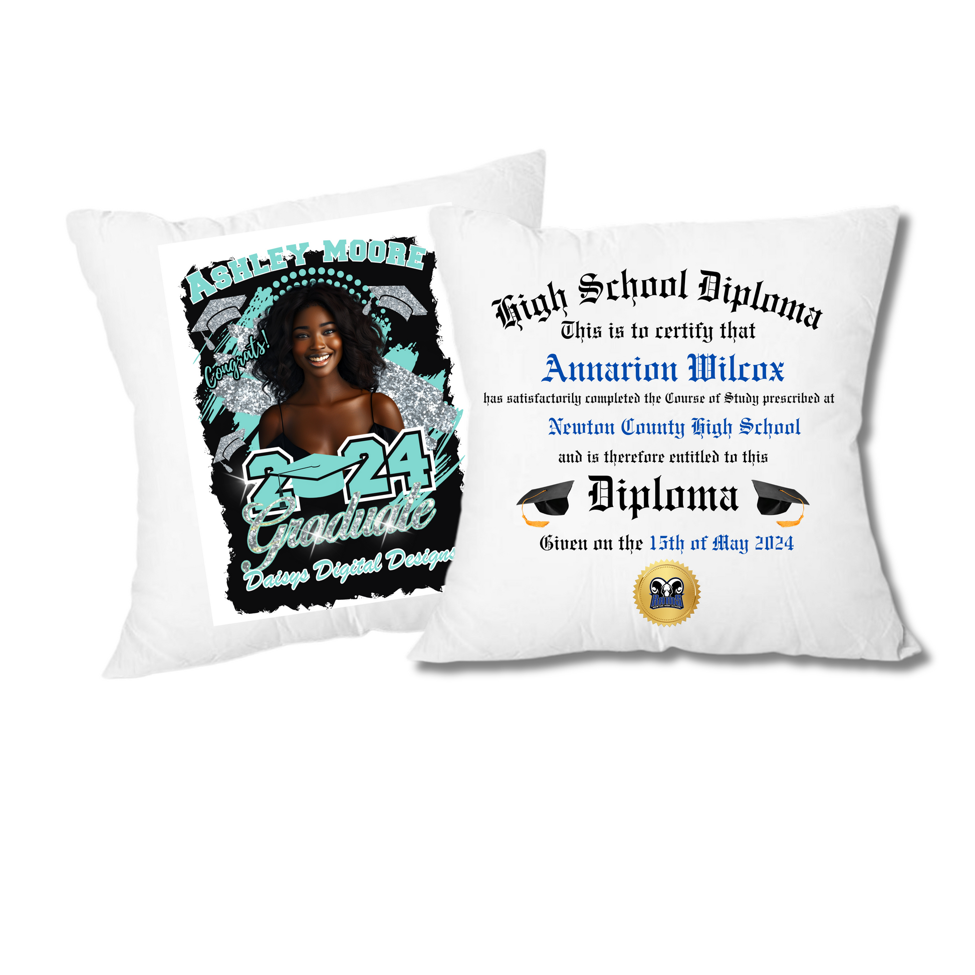 Please upload 1 picture of your graduate. School colors, mascot and all information you would like added to the pillow.